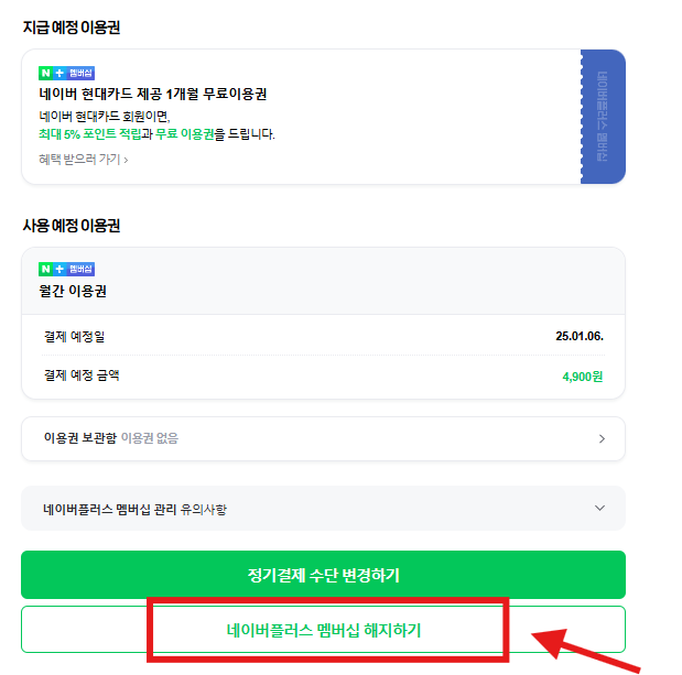 - 네이버페이 > 플러스 멤버십 > 해지하기