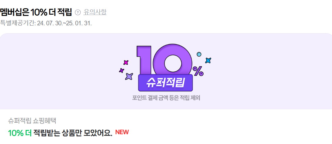 - 특별 제공 기간: 2024.07.30 ~ 2025.01.31 동안 10% 더 적립