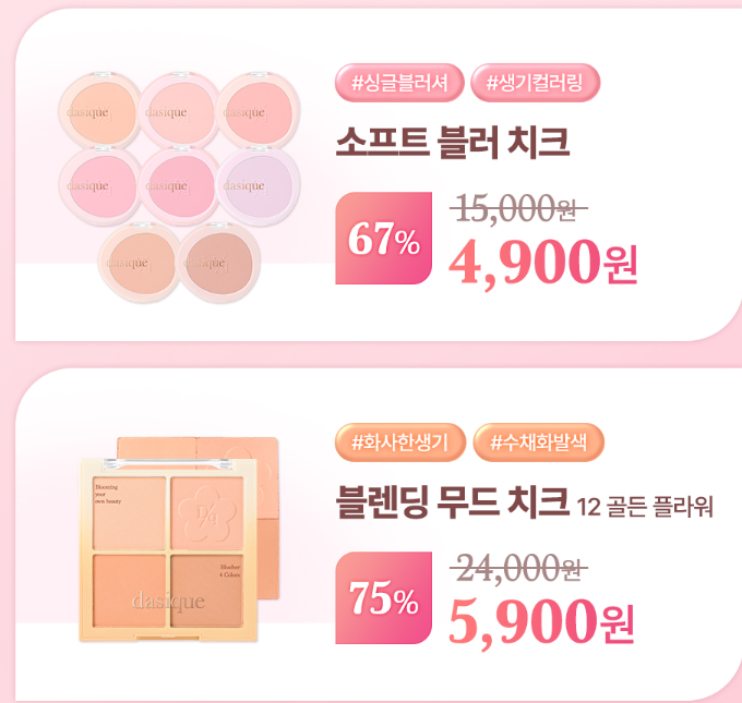 미니 섀도우 팔레트를 비롯해 다양한 메이크업 제품들이 저렴한 가격에 판매되니, 꼭 데이지크 공식 자사몰에 방문하셔서 원하는 제품을 득템해 보세요.
