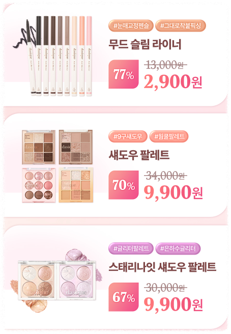 이번 만우절 세일 이벤트에서는 미니 섀도우 팔레트 외에도 여러 인기 제품들이 한자리에 모였어요.
