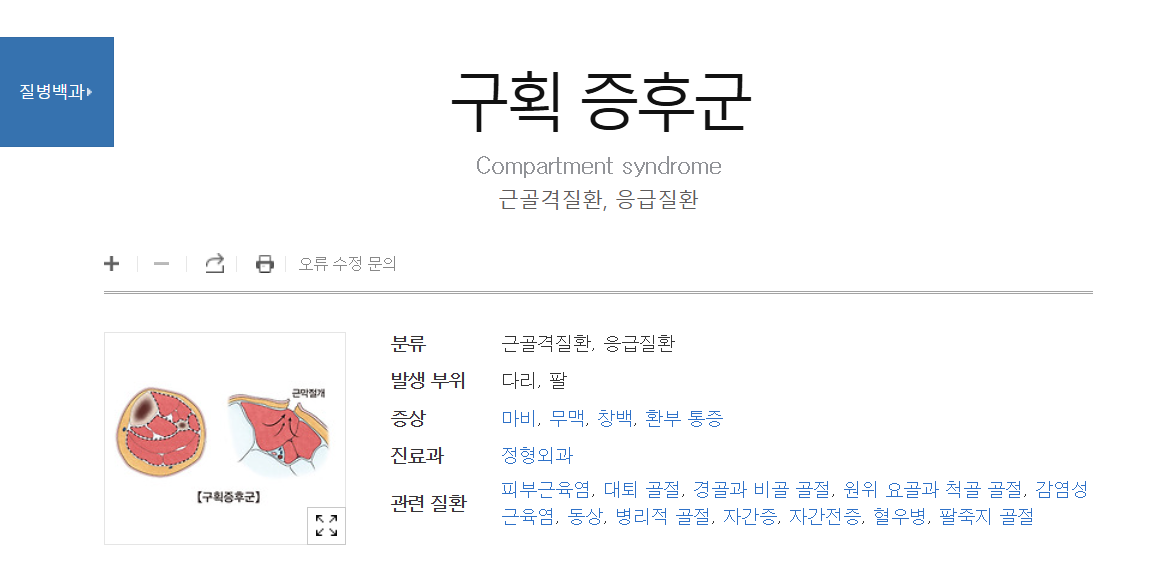 이 병은 주로 외상(골절, 타박상) 후 발생하지만, 수술 후 합병증으로도 나타날 수 있습니다. 압력이 증가하면 조직이 괴사에 이를 수 있어 응급 상황으로 간주됩니다.