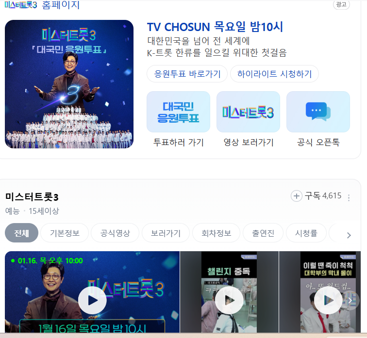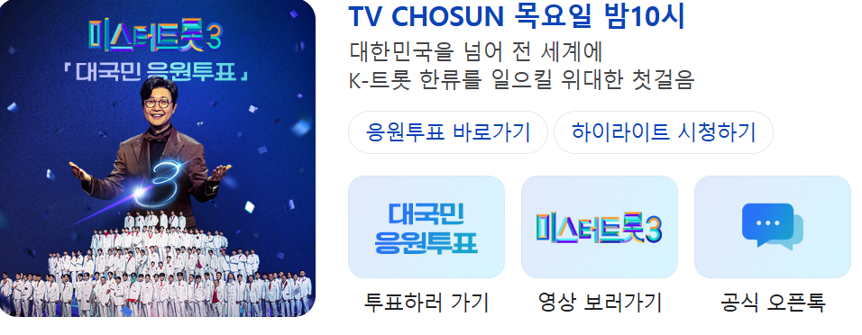 - 네이버나 다음에서 ‘미스터트롯3 다시보기’를 검색해 다양한 콘텐츠 확인