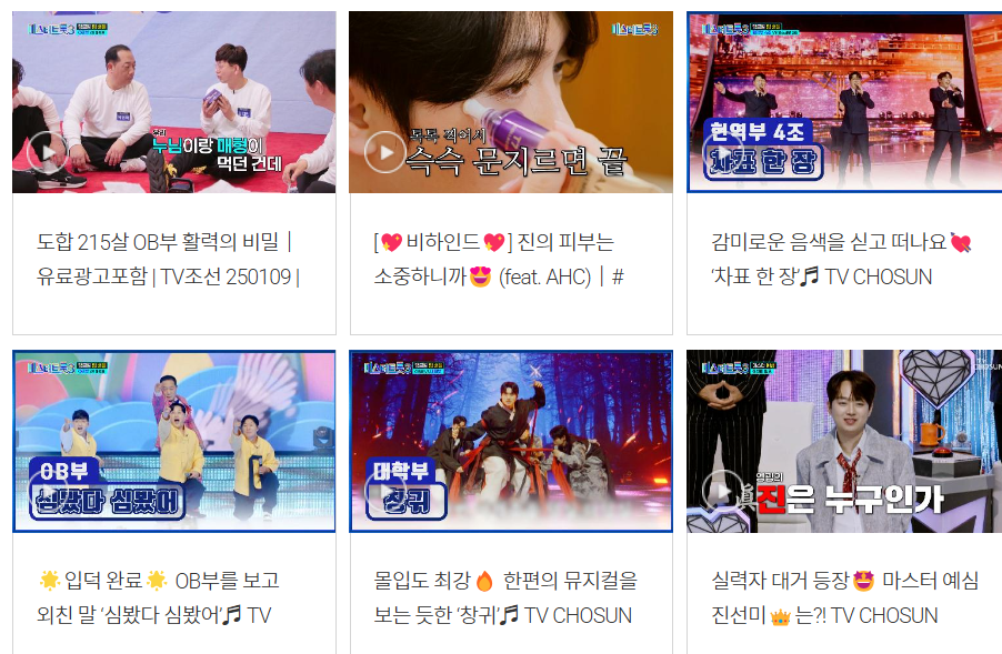 - TV조선 공식 유튜브 채널에서 하이라이트 영상 무료 시청 가능