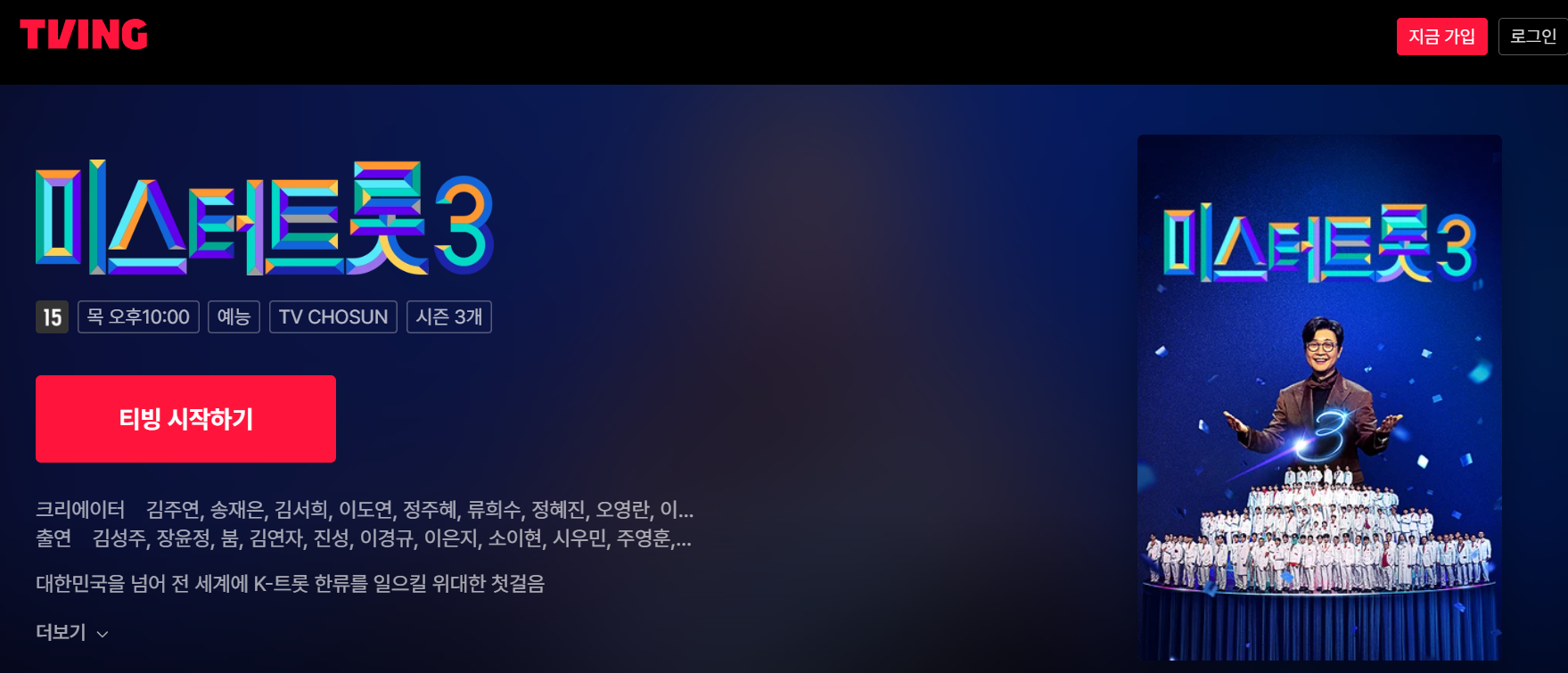‘미스터트롯3’는 다양한 OTT 플랫폼에서 시청 가능합니다.