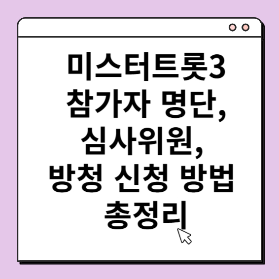 대한민국을 들썩이게 할 트로트 오디션 프로그램 미스터트롯3가 드디어 돌아왔습니다! 이번 시즌은 더 다양하고 풍성한 참가자들, 강화된 심사 기준, 그리고 독특한 무대 연출로 많은 기대를 모으고 있는데요. 오늘은 미스터트롯3 참가자 명단, 심사위원 정보, 방청 신청 방법 등 주요 내용을 꼼꼼히 정리해 드릴게요.