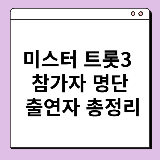 미스터트롯3 참가자 명단, 심사위원, 방청 신청 방법 총정리 대한민국을 들썩이게 할 트로트 오디션 프로그램 미스터트롯3가 드디어 돌아왔습니다! 이번 시즌은 더 다양하고 풍성한 참가자들,