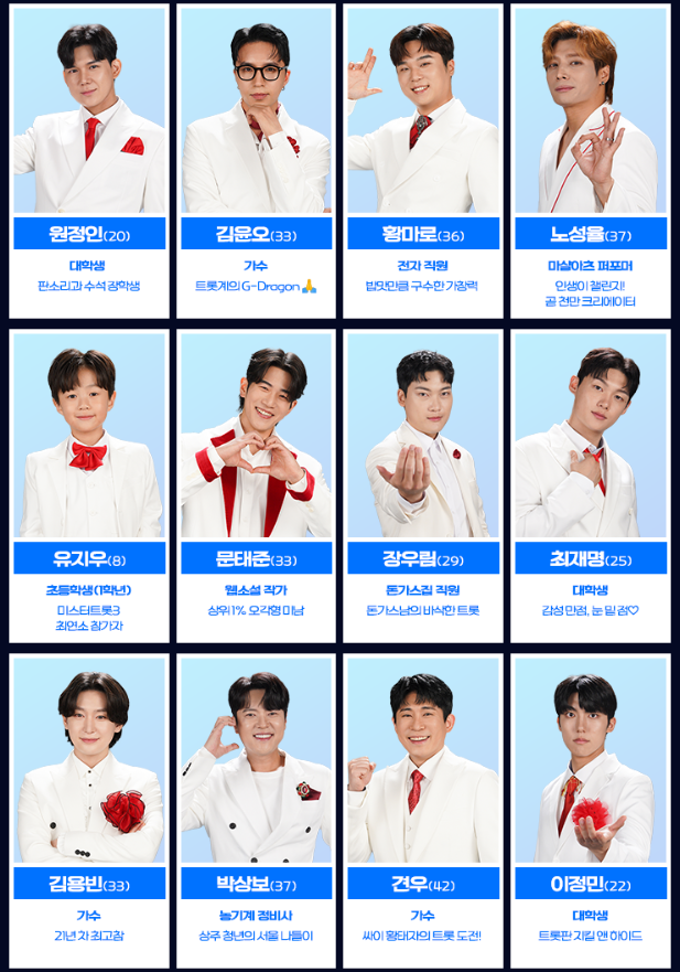 - 장민호, 영탁, 김희재, 이찬원, 정동원, 나상도, 안성훈, 박지현, 진욱, 박성온