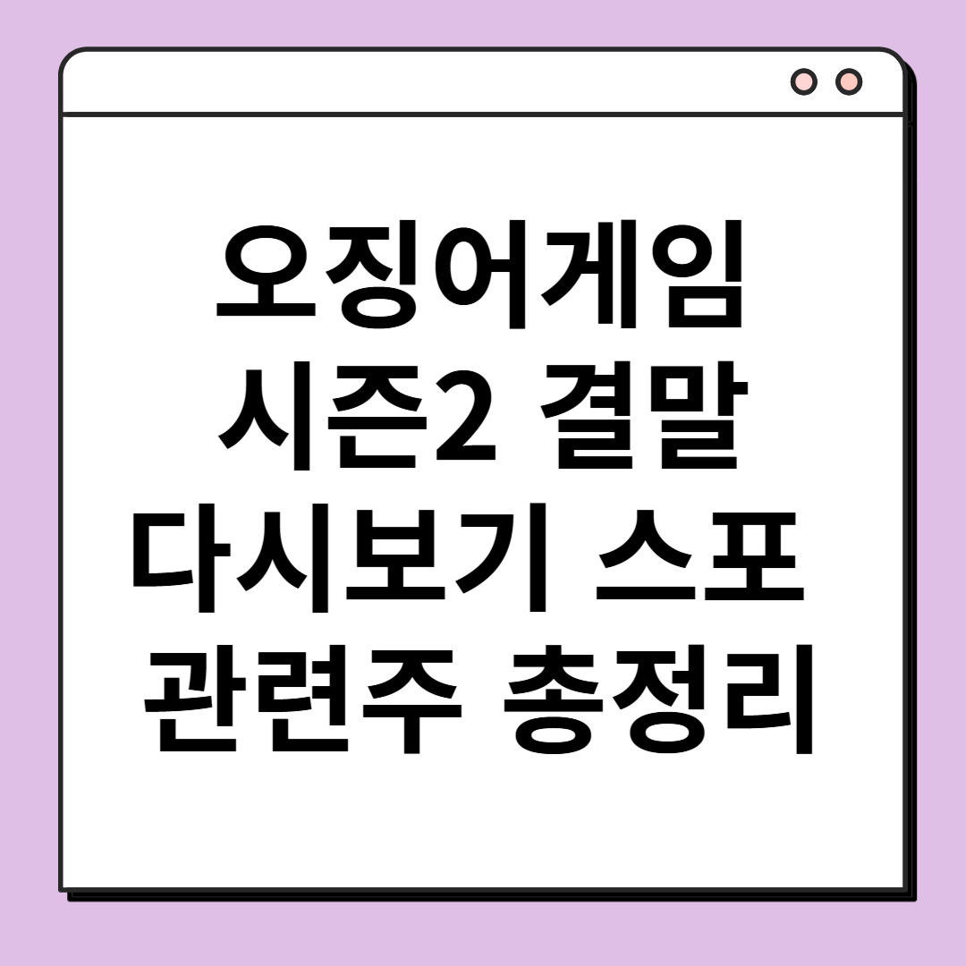이 글에서는 오징어게임 시즌2의 줄거리, 결말, 몇 부작, 주요 등장인물, 시즌3 정보, 그리고 관련 주식 정보까지 알기 쉽게 정리해보겠습니다.