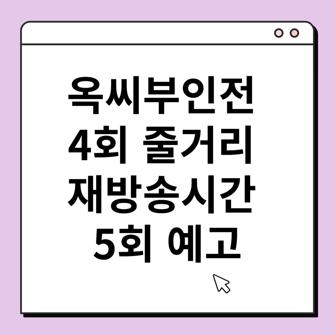 tvN 토일 드라마 옥씨부인전이 매회 화제를 모으며 시청자들의 사랑을 받고 있습니다. 4회에서는 주요 인물들의 숨겨진 비밀과 얽히고설킨 사건들이 긴장감 넘치게 전개되었는데요. 오늘은 옥씨부인전 4회 줄거리와 함께 5회 예고, 그리고 재방송 시간을 정리해보겠습니다.