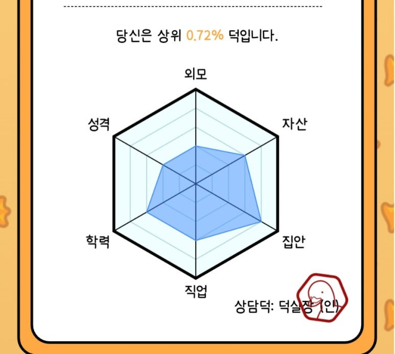 육각덕 테스트는 덕질의 강도와 라이프스타일을 종합 분석하여 등급을 매깁니다.