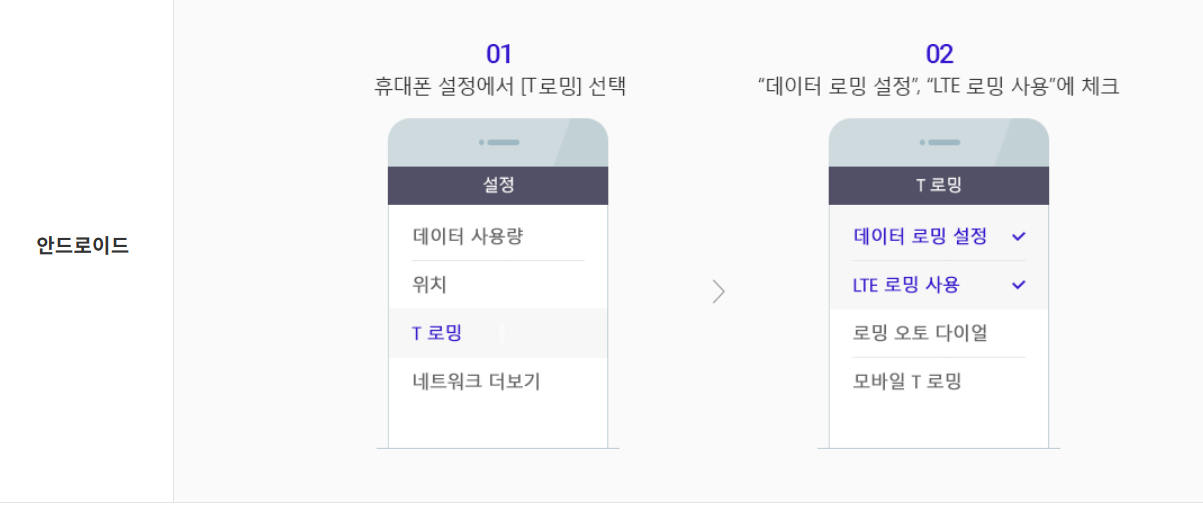 - 서비스: 로밍 단말기 대여, 자동로밍 설정 지원