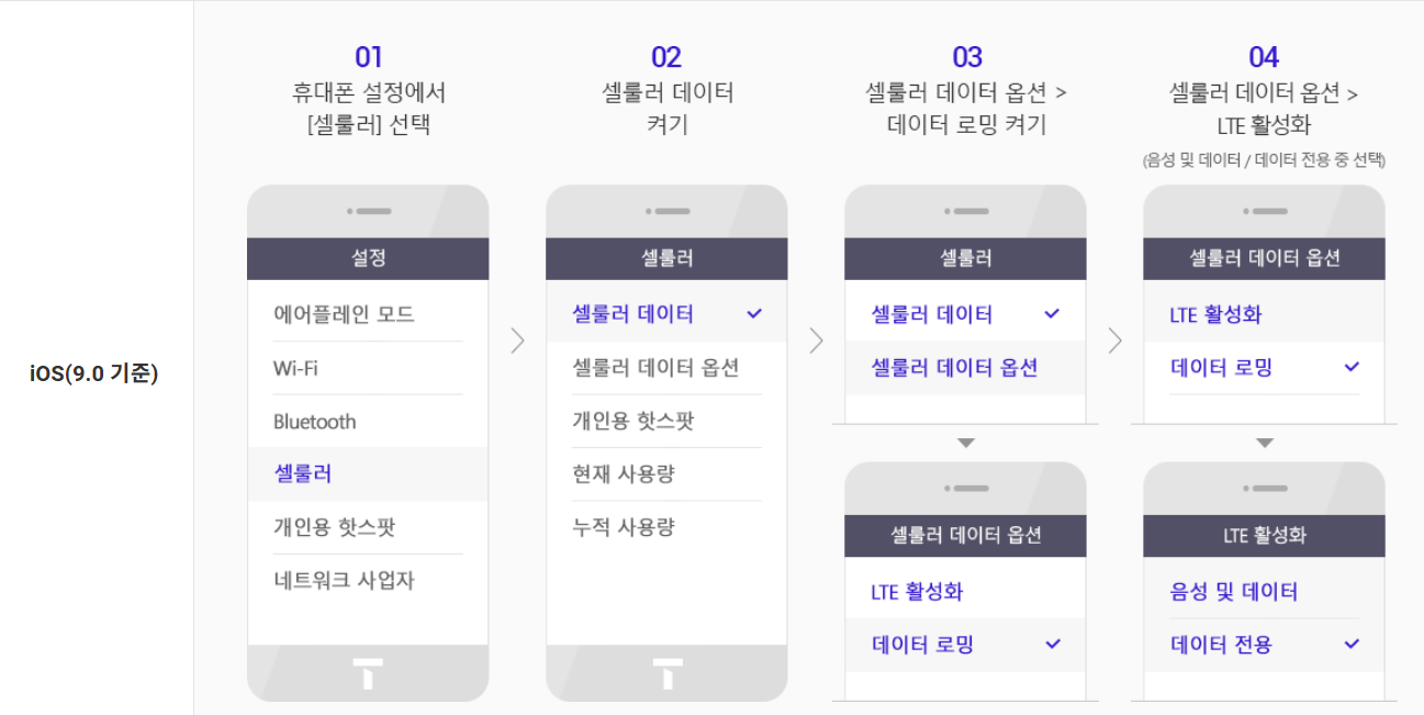 - 서비스: 자동로밍 설정, 추가 지원