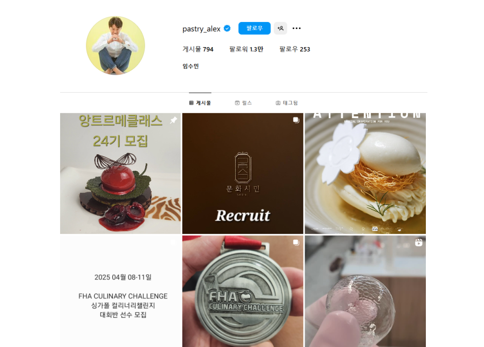 - 제과제빵 분야에서 경력을 쌓으며 설탕 공예 등에서 두각을 나타냄