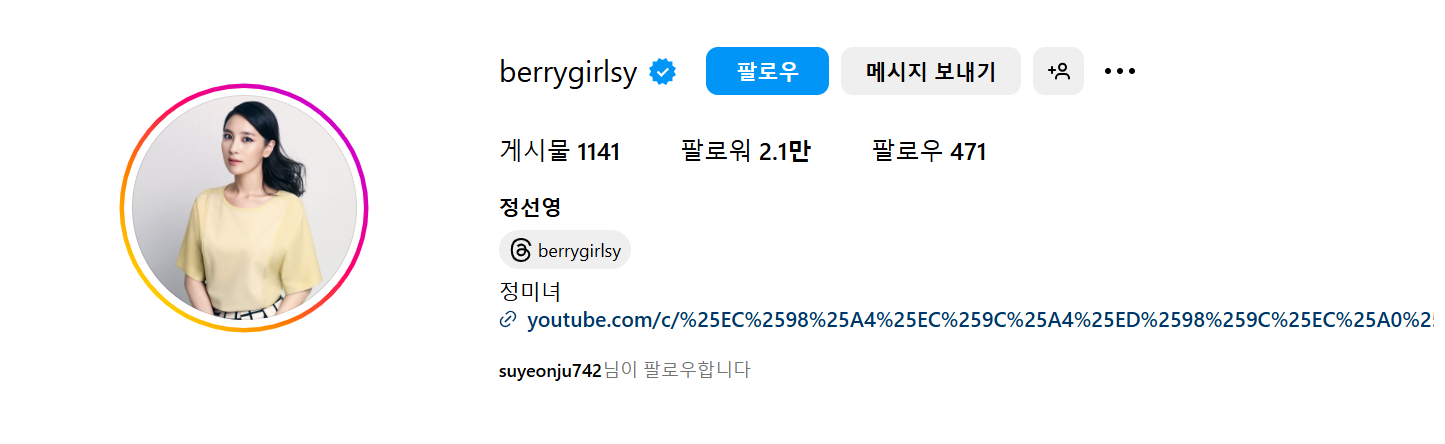 - SNS: 정미녀 인스타그램 @berrygirlsy