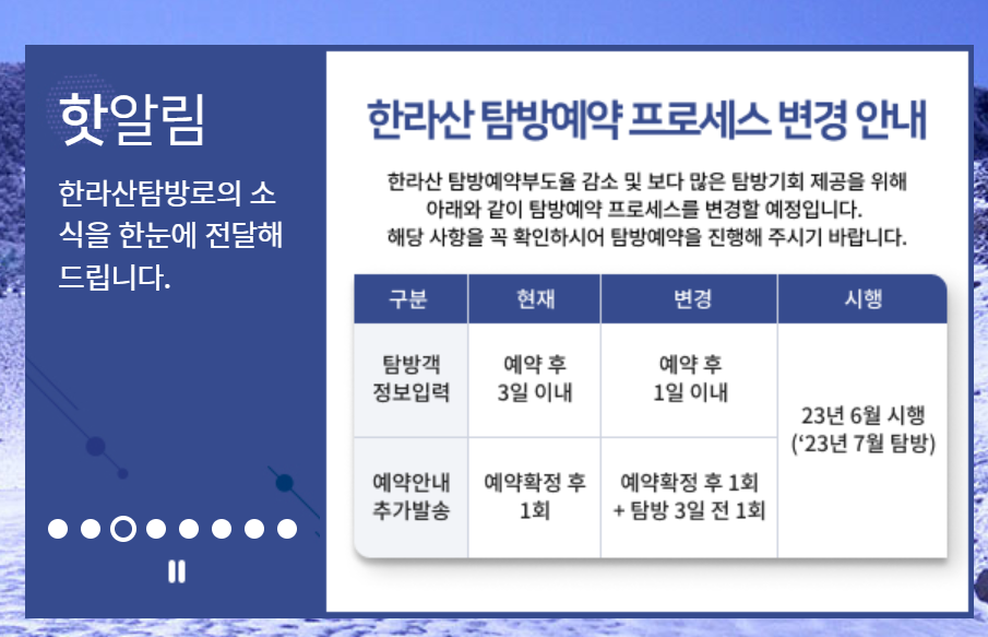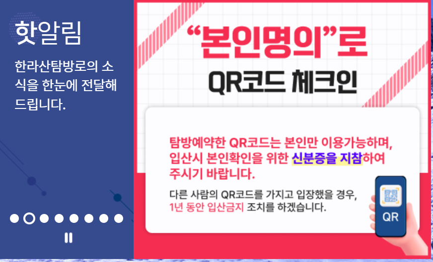 한라산 탐방 예약 시스템 - 탐방 문의:
