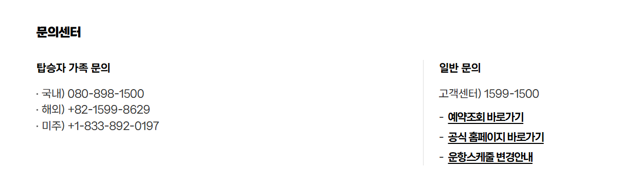- 국제선 문의: 해당 국가별 고객센터로 문의