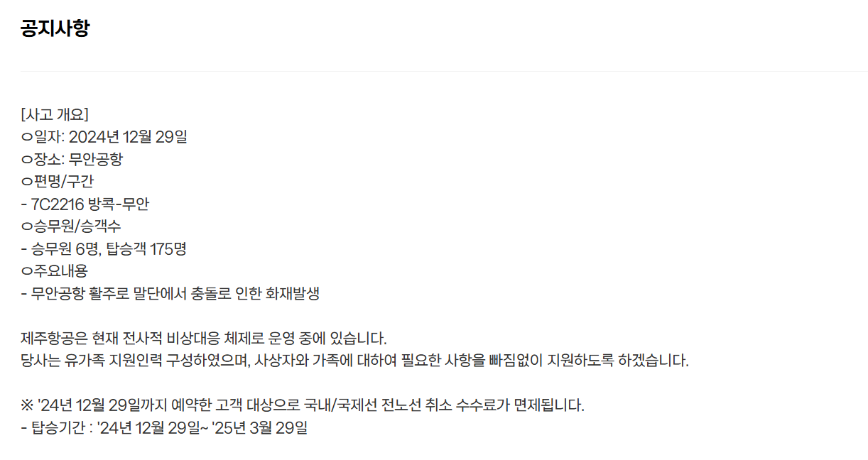 - 항공편 감축 운영: 안전 점검 완료 시까지 일부 항공편 운영 축소