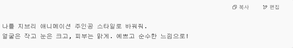 - “지브리 캐릭터처럼 순수하고 감성적인 느낌 부탁해”