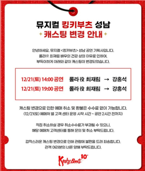 - 중단 결정: 2막 시작 전, 최재림은 무대에 올라 직접 관객에게 공연 중단에 대한 사과를 전했습니다.