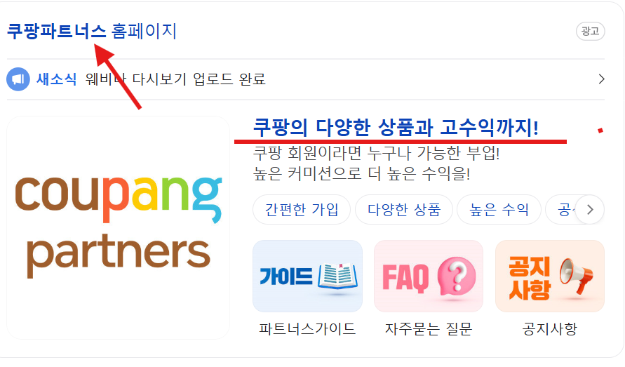 쿠팡 파트너스 홈페이지 접속: 네이버 등 검색 포털에서 '쿠팡 파트너스'를 검색하여 공식 홈페이지에 접속합니다.