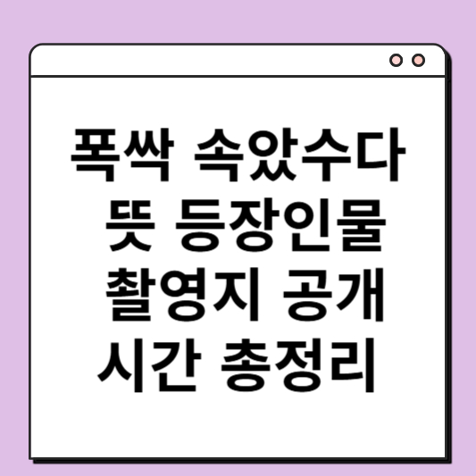 넷플릭스 오리지널 시리즈 '폭싹 속았수다'가 뜨거운 관심을 받고 있습니다. 제주도를 배경으로 한 감성 드라마로, 아이유와 박보검의 만남만으로도 기대를 모았는데요. 이 글에서는 드라마의 뜻, 등장인물, 촬영지, 공개 시간을 정리하고, 시청자들이 궁금해하는 Q&A까지 함께 알아보겠습니다.