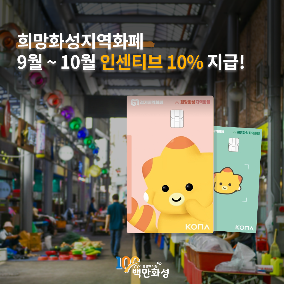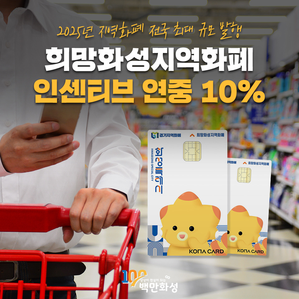 희망화성 지역화폐는 화성시에서 발행하는 모바일 또는 카드형 지역 화폐로, 관내 가맹점에서 사용할 수 있는 지역화폐입니다. 사용 시 10% 추가 인센티브가 지급되며, 지역 내 소비 촉진과 소상공인 지원 효과를 기대할 수 있습니다.