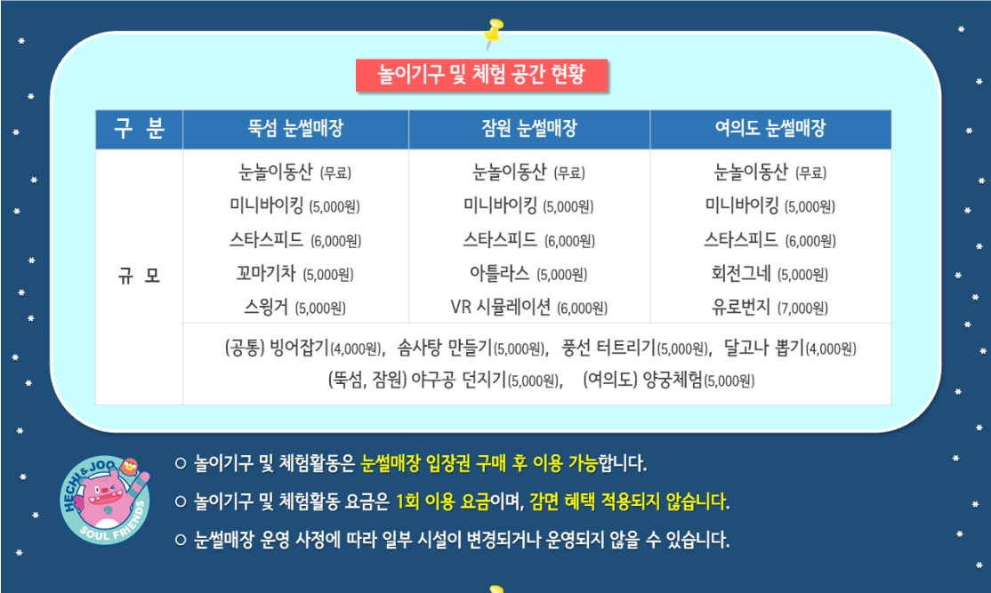 - 기상 상황 확인: 강설, 한파 등 기상 상황에 따라 일부 프로그램이 운영되지 않을 수 있습니다.