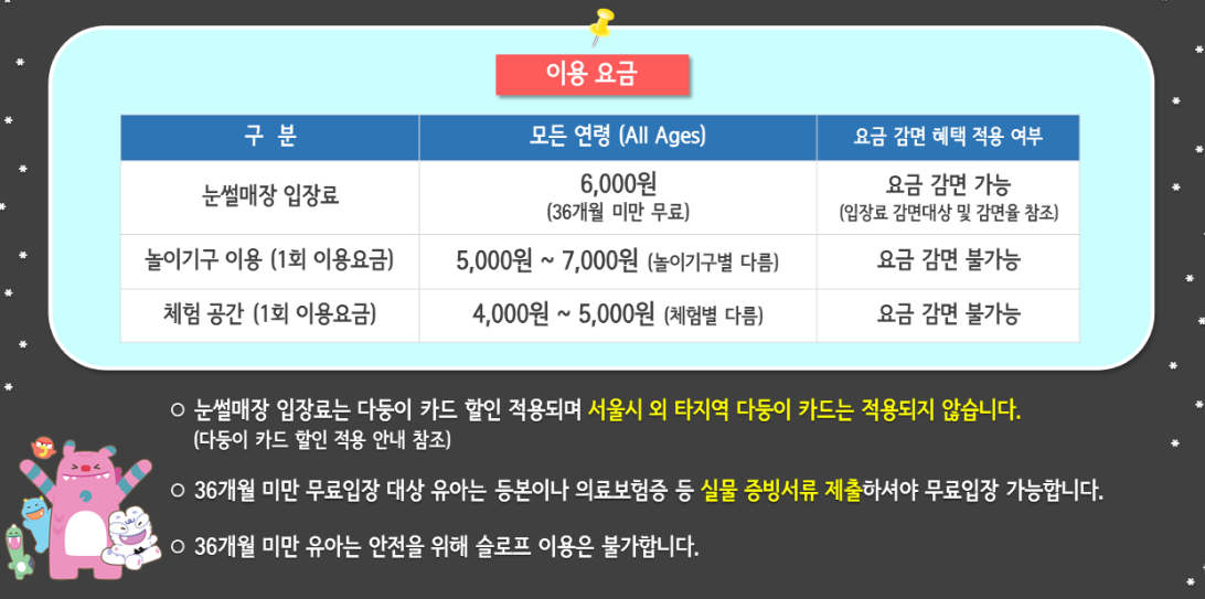 - 🎫 입장료: 6,000원 (부대시설 이용료 별도)