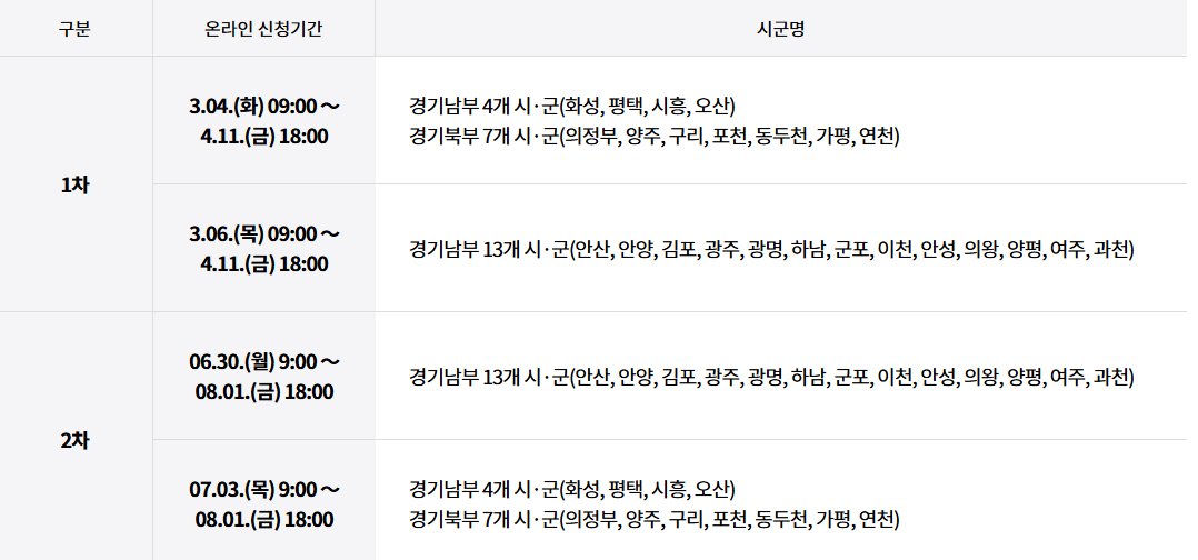 - 7월 3일 ~ 8월 1일: 화성, 평택, 시흥, 오산 등