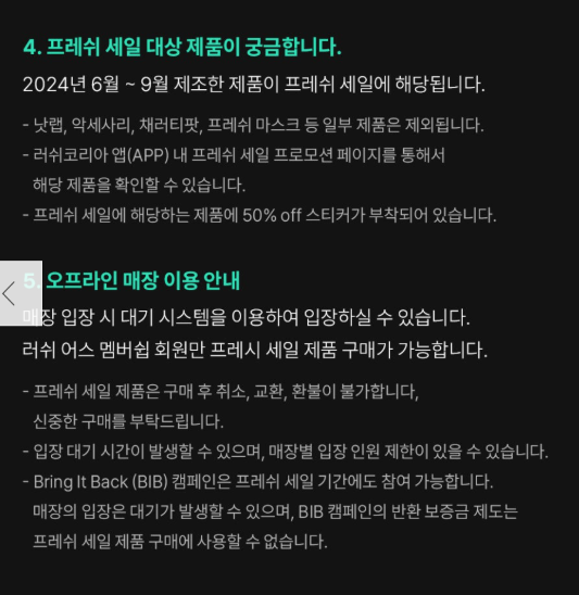 러쉬 프레쉬 세일 일정 한눈에 보기