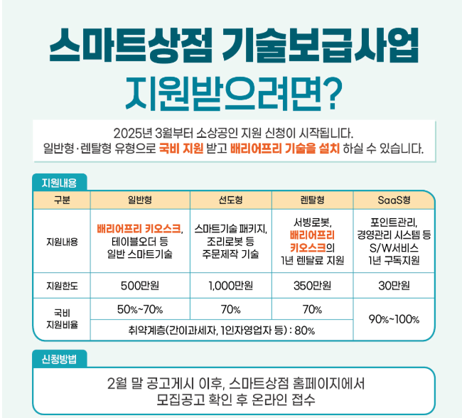 2월말 공고개시후, 스마트상점 공홈에서 모집공고 확인하시고 온라인 접수 하시면 됩니다.
